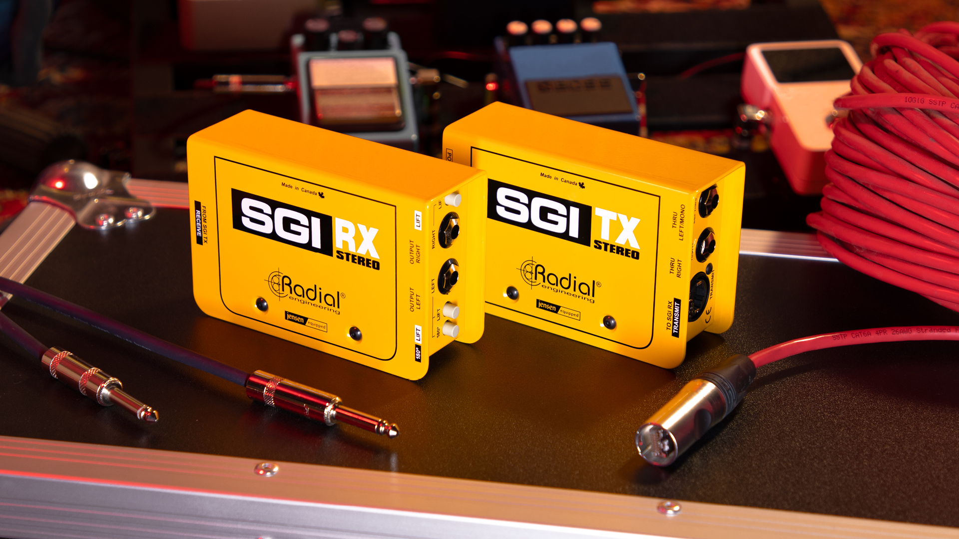 The SGI Stereo expands our innovative SGI platform into the stereo world, allowing players to run stereo signals to remote rigs over long distances without sacrificing tone or feel. With stereo inputs and outputs, analogue audio transmission over a single Ethernet cable, and Jensen transformers at the core, SGI Stereo makes it easier than ever to place amps, pedals, and stereo rigs exactly where they need to be while preserving sound quality and dynamics.