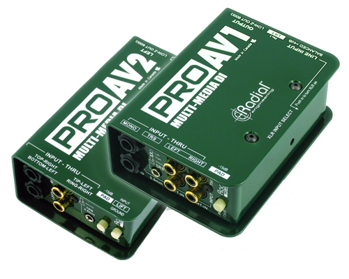 ProAV1 & ProAV2 – The Swiss Army Knives of multimedia DIs. For reliable analog interfacing for mono and stereo playback rigs, respectively, our ProAV multimedia DIs offer all the connectivity options you need.