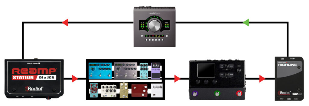 - From your DAW, route that recorded DI track out through the Radial Reamp Station’s line input.